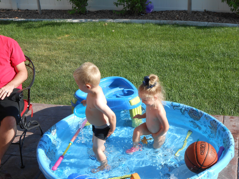 Steve took them outside and of course there was absolutely no chance of of avoiding the water. Max had no suit so he just swam in undies and Hadley was very fast to follow (she refused to put on a suit if he didn't have to).